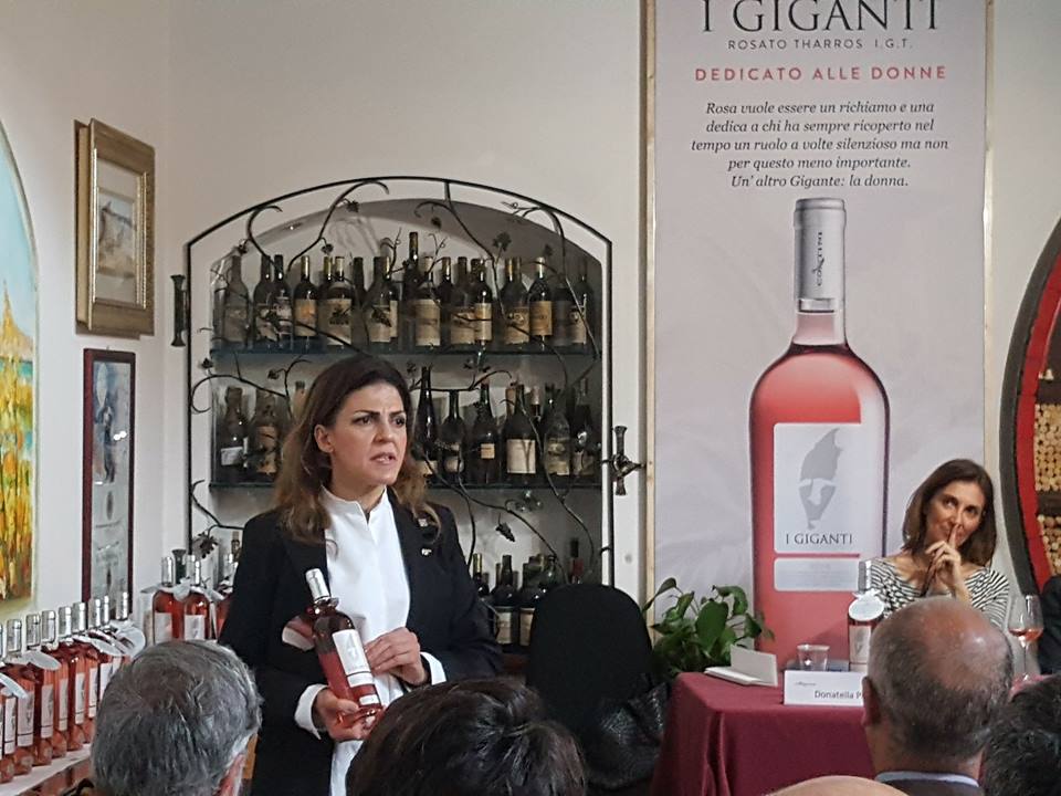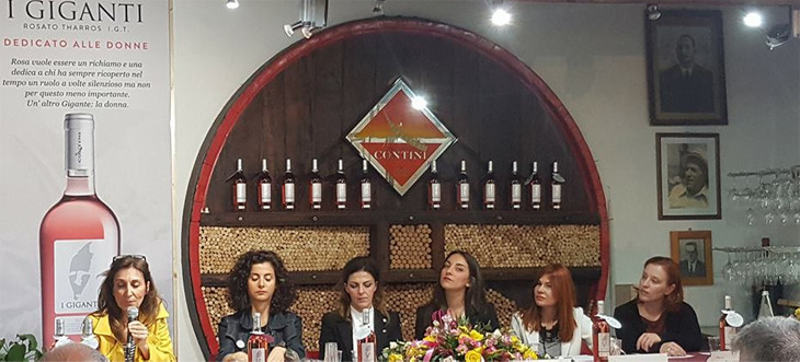 Anche la presentazione ufficiale del Giganti Rosa ha seguito questa importante fonte di ispirazione tutta al femminile. Nella mattinata di venerdì 27 aprile, l’azienda Contini ha riunito nella propria sede di Cabras rappresentanti dei media e operatori del settore, proponendo un incontro-dibattito che ha dimostrato come anche in un contesto edonistico come la presentazione di nuovo vino si possano affrontare temi di grande rilevanza sociale, trovando il registro più adeguato. L’elenco degli interventi, abilmente moderati dalla giornalista di Sardinia Post Donatella Percivale, si è articolato in una serie di testimonianze al femminile di grande interesse. A cominciare da Monica Contini – rappresentante, insieme ad Alessandro e Mauro, della quarta generazione alla guida dell’azienda familiare – che ha ripercorso velocemente l’elenco di figure femminili di eccellenza che hanno costellato la storia della nostra isola e ha ricordato come anche il prendersi cura della valorizzazione del territorio attraverso la produzione di vini di qualità è assimilabile alla funzione materna di continuazione della specie. A Patrizia Desole, presidente di Prospettiva Donna, è spettato il compito di introdurre uno degli argomenti forti del dibattito, la vera e propria “guerra civile” che vede le donne sotto la minaccia costante di una parte del mondo maschile, minoritaria certo, ma pur sempre fonte di allarme e pericolo. E sempre Patrizia Desole ha regalato alla platea una bella citazione di Nereide Rudas, la psichiatra recentemente scomparsa, che così recita “Il mondo deve iniziare a parlare il più presto possibile con voce di donna”. Alessandra Meddi, ristoratrice romana trapiantata a Cagliari, e Claudia Pinto, Sommelier ed Enotecaria, hanno raccontato la loro esperienza umana e professionale, legata al filo doppio all’impegno e alla passione, ricordando anche l’importante ruolo ricoperto dall’associazione Le Donne del Vino che proprio di recente ha celebrato i trent’anni di attività. Le ospiti “continentali” Licia Granello, giornalista di Repubblica, e Maida Mercuri, Sommelier e Ristoratrice, autodefinitesi “sorelle di vita” in virtù della lunga e solida amicizia che le lega, hanno ripercorso i propri percorsi professionali che hanno preso il via in epoche e ambiti lavorativi non proprio favorevoli alla presenza femminile. Ma grazie al coraggio e alla determinazione sono riuscite a realizzarsi pienamente come donne e come professioniste. Il termine “guerra civile” è senza dubbio un’espressione forte, ma purtroppo di emergenza sociale vera e propria si tratta, e bisogna affrontarla tutti insieme, uomini e donne, magari partendo dalla quotidianità anche sotto forma di scelte terminologiche consapevoli, che ribadiscano il rispetto per la figura femminile e definiscano il male per quello che è, senza eufemismi o giustificazioni di comodo.